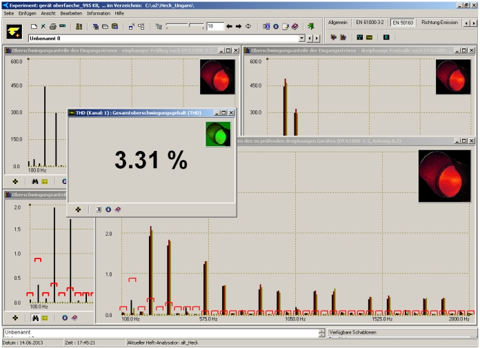 Heft-Analysator enthält eine spezielle Palette von Objekten, die den Anwender bei der Kontrolle und Zertifizierung nach EN 61000-3-2 unterstützen.