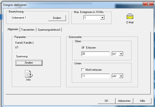 Standard Events sind Transiente, Spannungseinbruch und