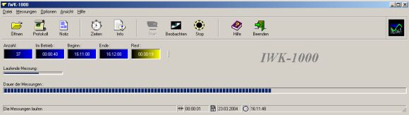 Das geschieht auf einfache Art und Weise: Per Mausklick können Sie das Heft in einer Liste abspeichern, um es beim nächsten Experiment einfach aus dieser Liste aufrufen zu können. Also müssen Sie die gleiche Arbeit nicht zweimal machen. Die Anzahl der möglichen Hefte ist unbegrenzt. Auf diese Weise erhalten Sie für jede Aufgabe ein entsprechendes Messsystem. Das Hauptfenster des Programm IWK-1000 ist das "Cockpit" des Messsystems.