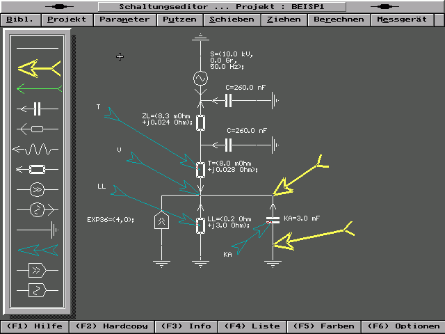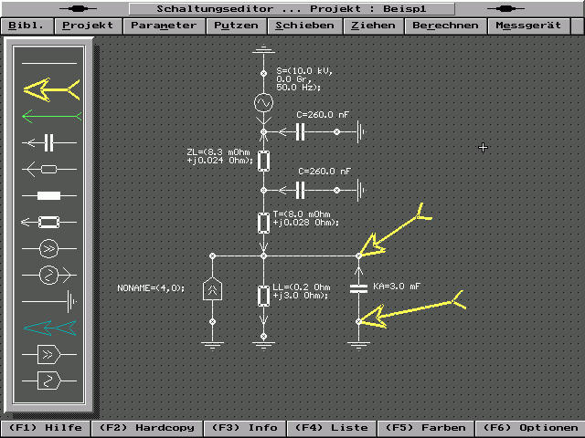 Falls Meßergebnisse von Strömen in drei Phasen vorhanden sind, kann man eine Dreiphasen-Ersatzschaltung des zu untersuchenden Energieversorgungsnetzes erstellen und die unsymmetrischen Zustände des Netzes sowohl bei der Basisfrequenz als auch bei den Frequenzen der Oberschwingungen untersuchen.